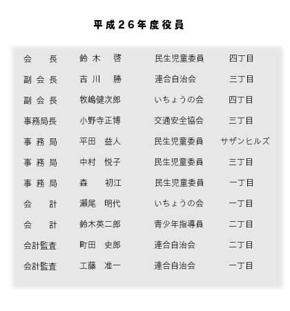 地域との係わりは、四丁目の運営委員会からだが、当時はまだ企業の第一線で活躍中、定年まで、仕事・家庭・地域の三役を見事にこなされてきた。そして、企業人の目で、目の前の事柄をきちんと見て、もっと改善しよう、もっと良くなるはずともと前の責任感で積極的に取り組んでこられた。